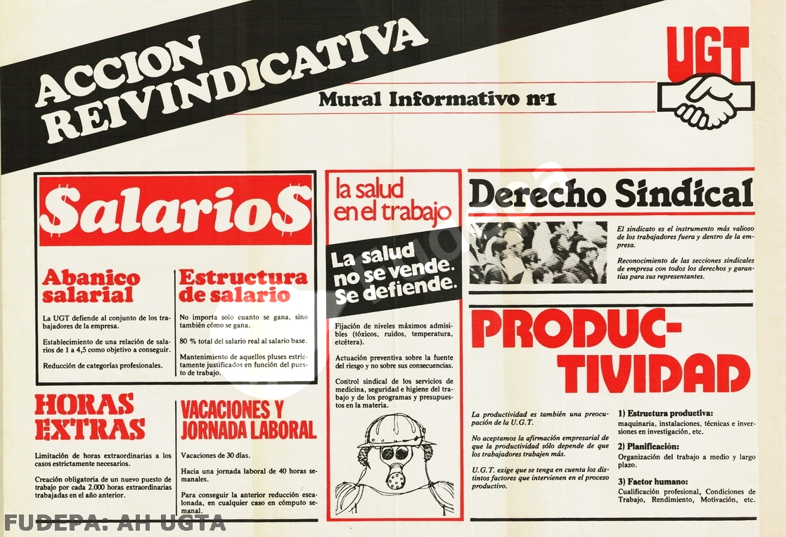Acción Reivindicativa. Mural informativo nº 1. Salarios. Productividad. Horas extras